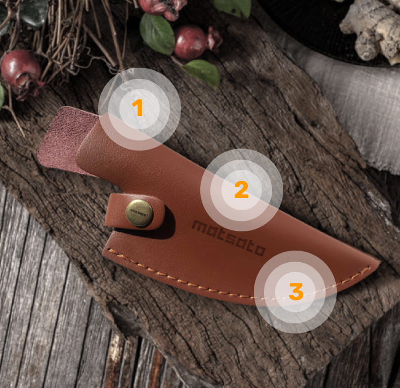 Con el tiempo, cualquier cuchillo puede desafilarse o desportillarse si no se cuida adecuadamente. La funda de cuero Matsato puede ayudar a evitarlo.